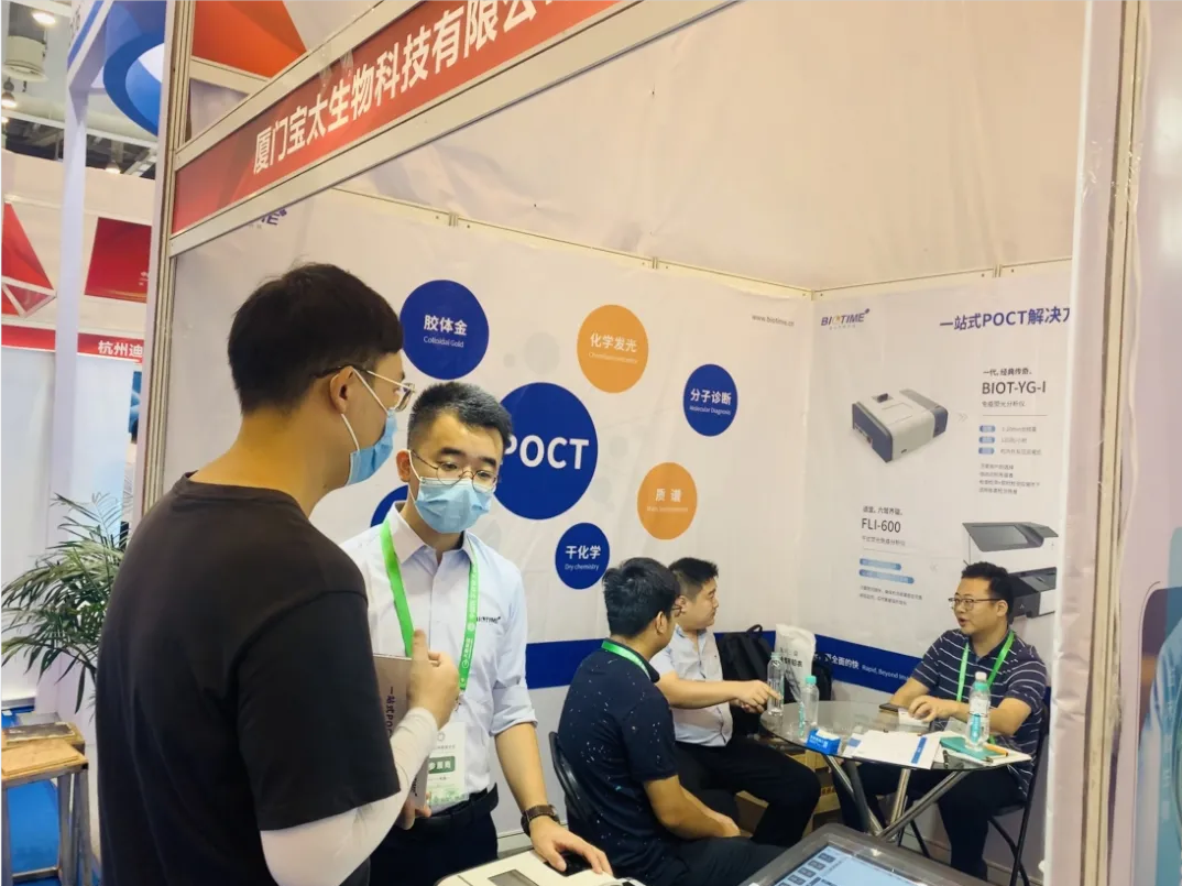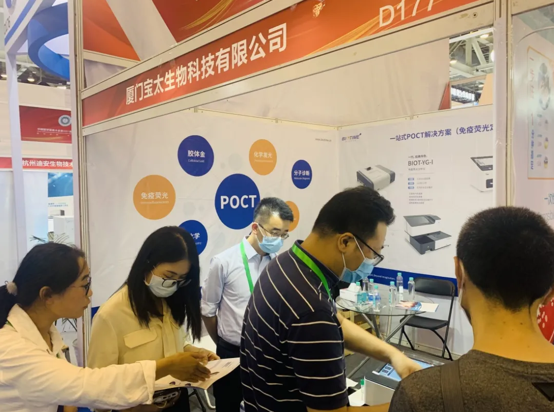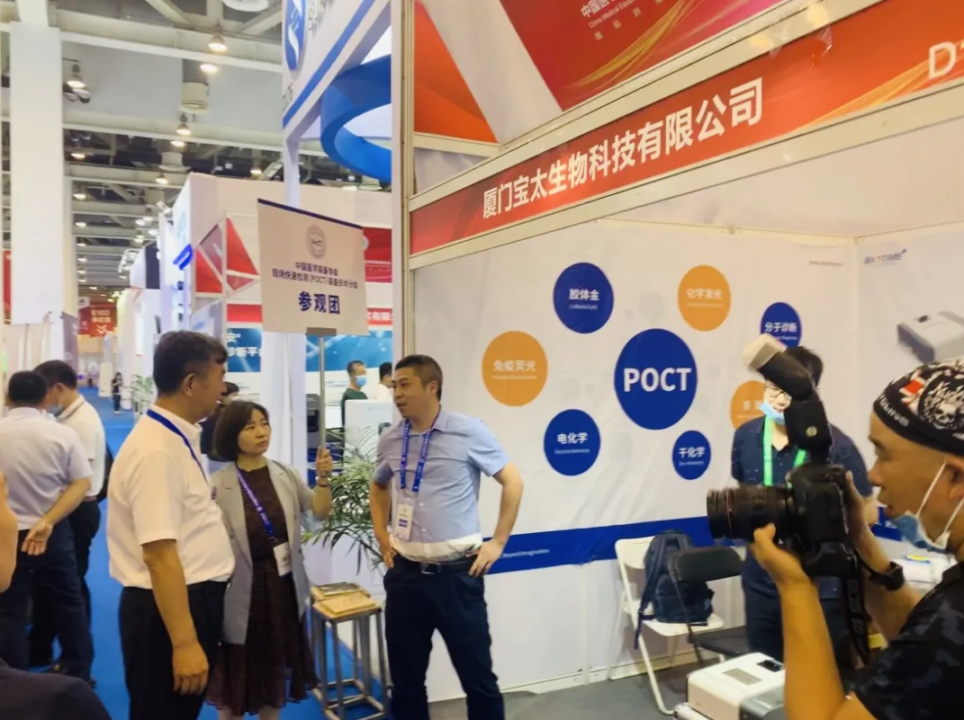 展會現(xiàn)場,快速檢測(POCT)裝備技術分會王清濤會長帶領參觀團蒞臨寶太生物展臺進行指導工作,并給予了寶太生物創(chuàng)新產(chǎn)品高度的肯定。同時,寶太生物D177展位承接了POCT實操培訓及考核工作,讓醫(yī)療從業(yè)者POCT操作人員直接動手操作寶太生物熒光免疫定量分析儀,現(xiàn)場感受POCT的方便、快捷。